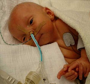 Die ersten Wochen mochte ich diese fremde Welt, in der ich nur selten die mir bekannten Stimmen hören konnte (Besuchszeiten), gar nicht sehen. Die Ärzte meinten, ich könne vielleicht gar nicht sehen, doch da irrten sie sich. Genauso wie man mir nicht zutraute, dass ich schlucken konnte. Später lernte ich sogar einige ml Milch oder Tee aus einem Sauger zu trinken, ansonsten wurde ich über die Magensonde ernährt. Ich war auch nicht so schwer geistig behindert, wie manchmal behauptet wurde und hatte auch keine Epilepsie. Ich erkannte die Stimmen meiner Eltern, meines Bruders und nach und nach auch der Schwestern und Pfleger, die mich oft versorgten. So gerne wäre ich nah bei meiner Mama gewesen, doch wir mussten mehr als drei Wochen auf diesen Moment warten. Ich spürte, dass Mama sich innerlich etwas distanziert hatte, aus Angst es nicht ertragen zu können, sollte ich sterben. Ich genoss diese Kuscheleinheiten bei Mama oder Papa meistens sehr und unsere Bindung wurde stärker. Ich spürte diese bedingungslose Liebe meiner Eltern und habe auch mitbekommen, wie sehr Mama und Papa um diese Kuschelzeiten und um die Einbindung in meine Versorgung kämpfen mussten. Ich war halt etwas besonderes, ein Objekt der Forschung, dessen Leben man nicht gefährden wollte.